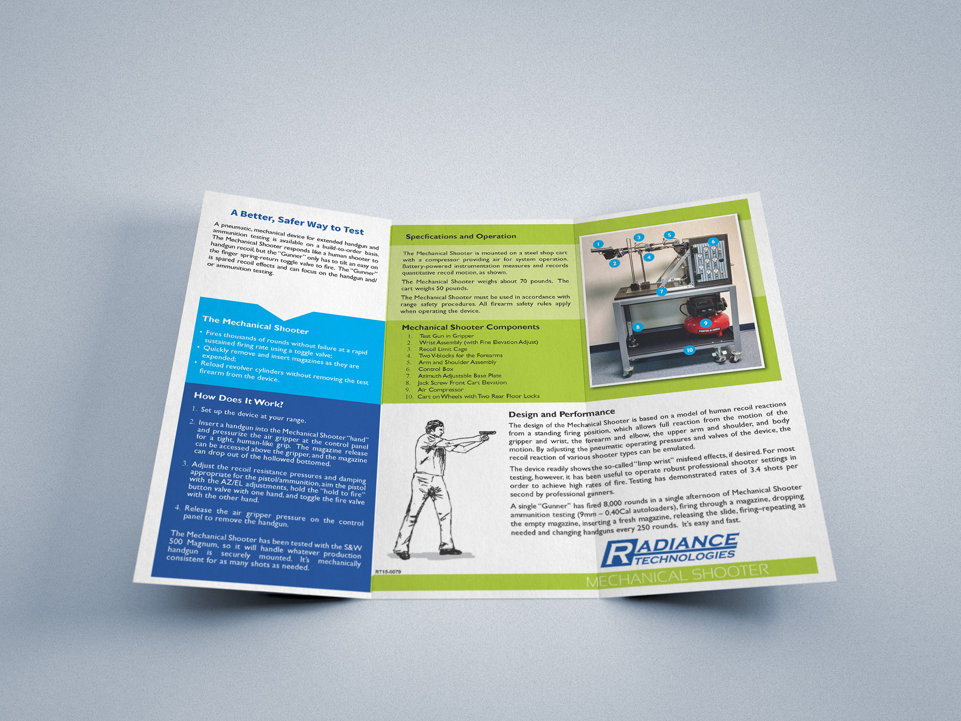 Tri-fold brochure for the Mechanical Shooter at Radiance Technologies