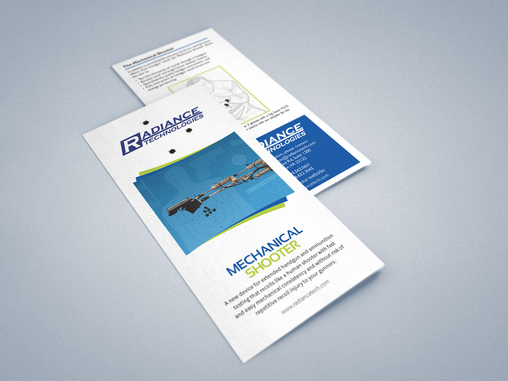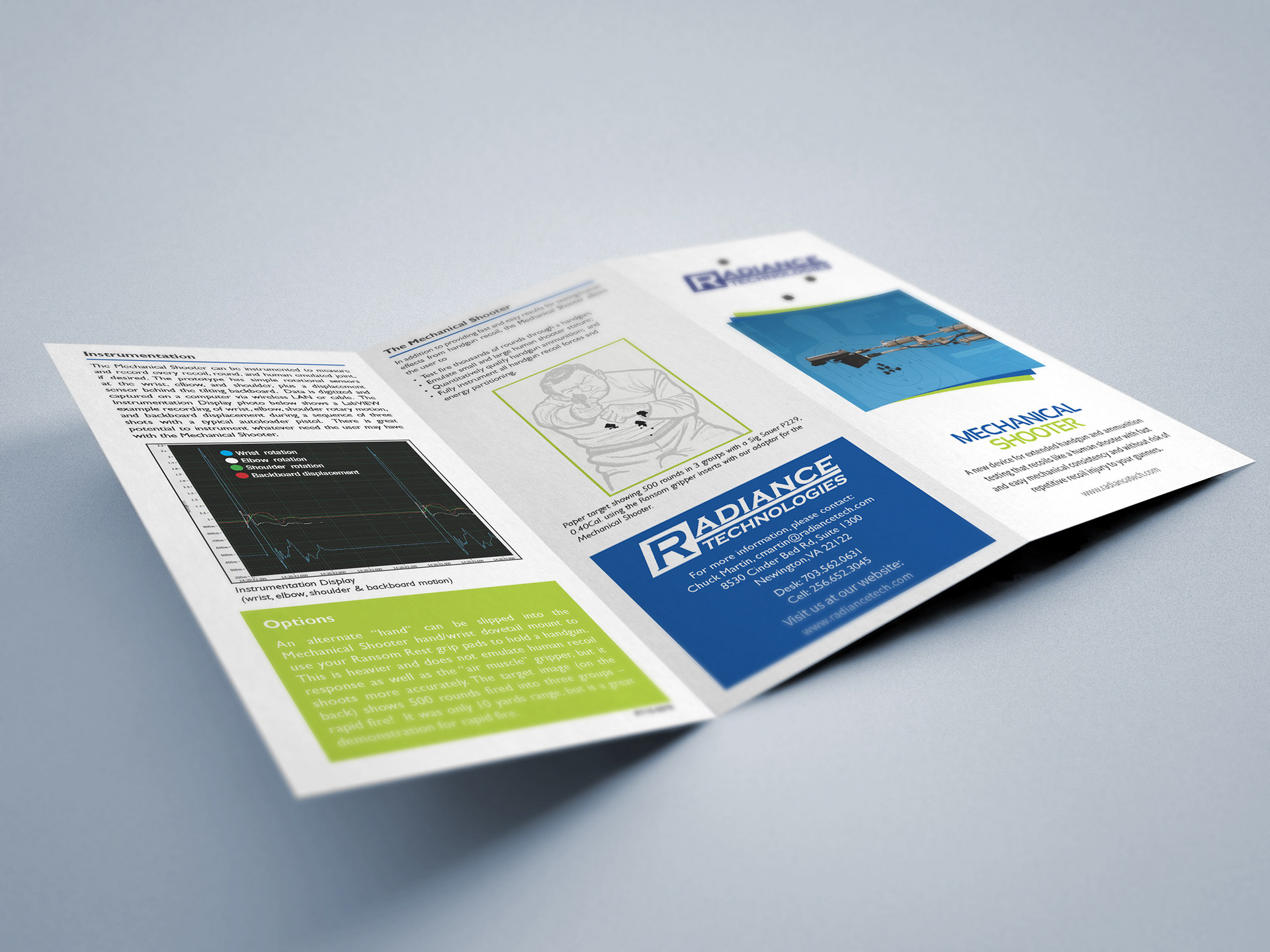 Color tri-fold brochure for the Radiance Technologies Mechanical Shooter