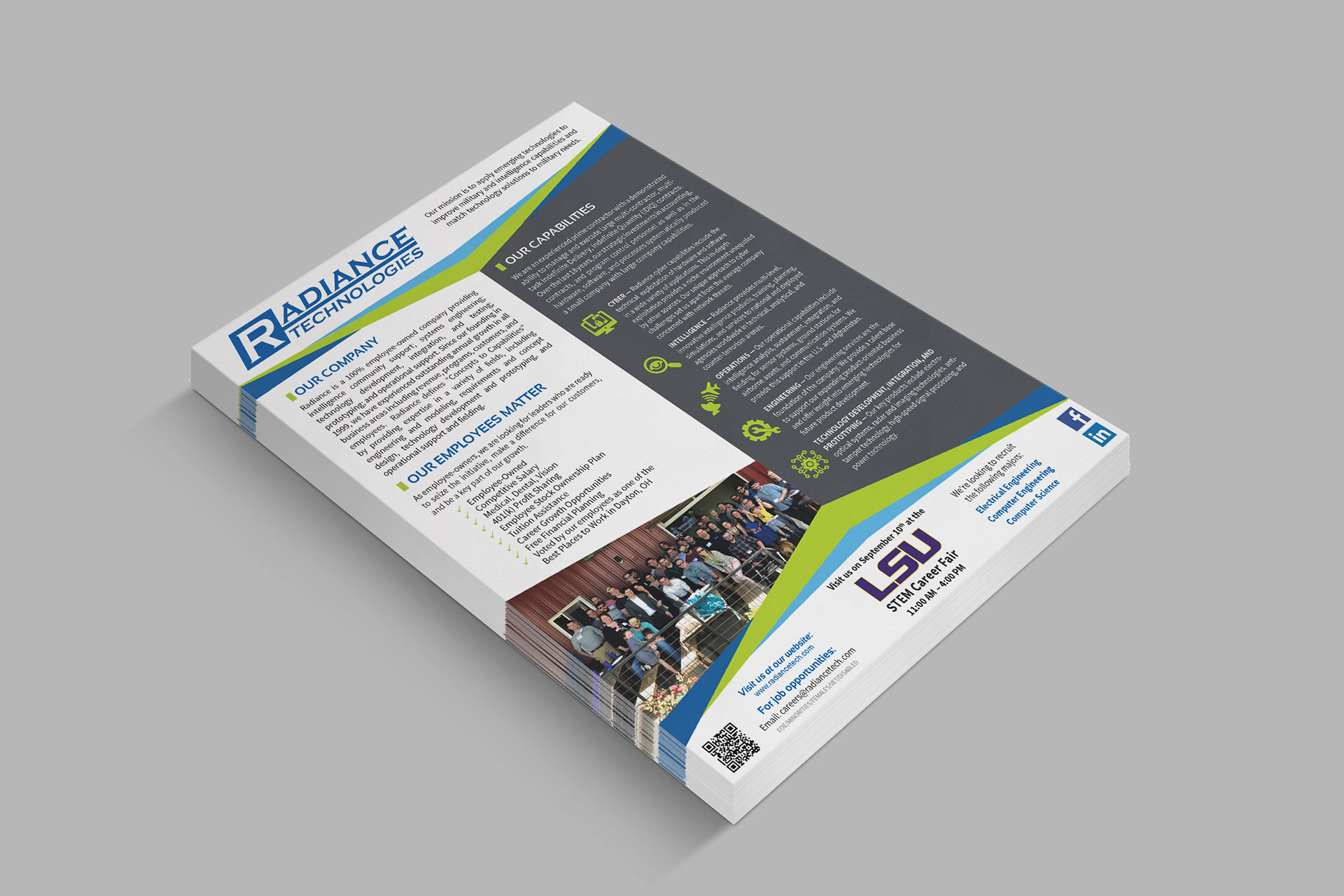 8.5x11" Recruitment flyer for Radiance Technologies for use in career fairs